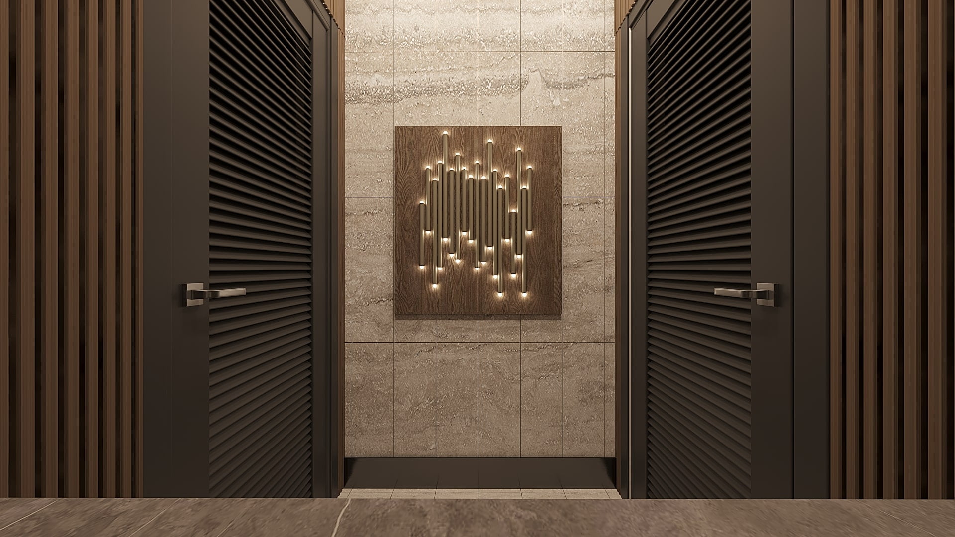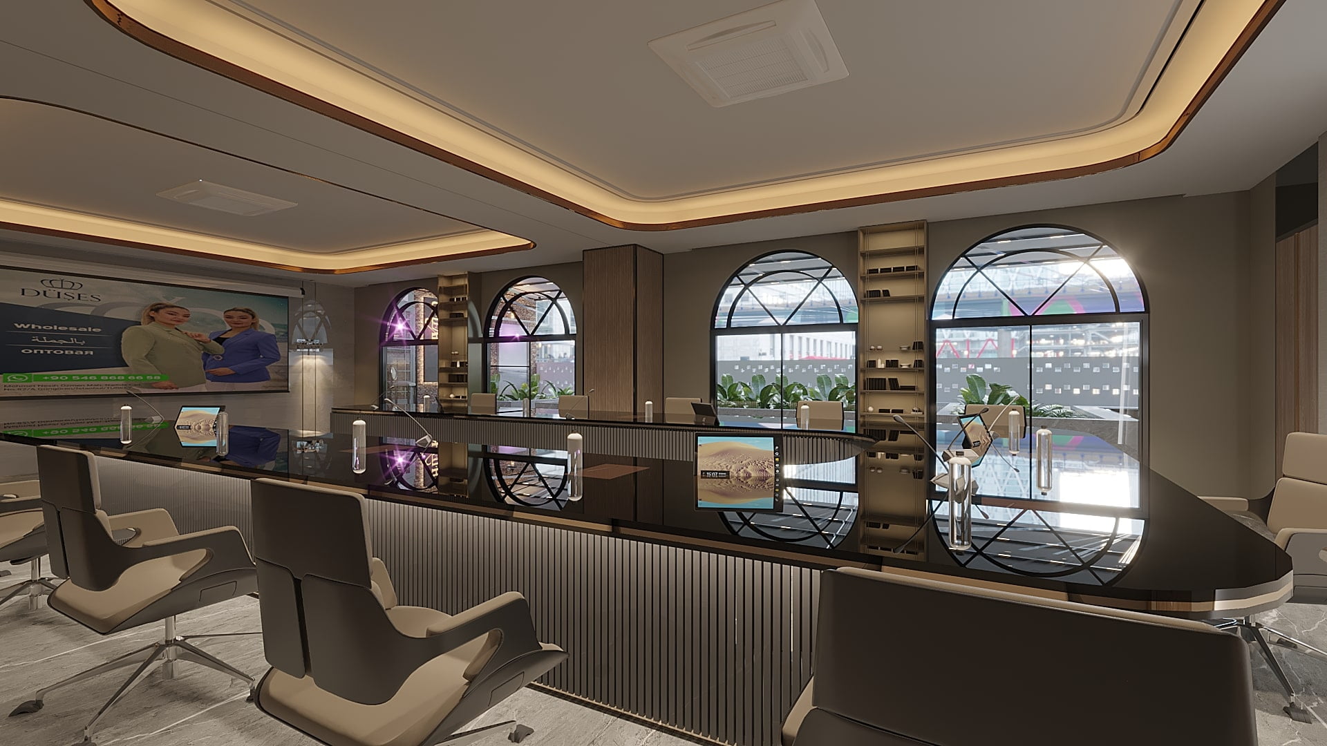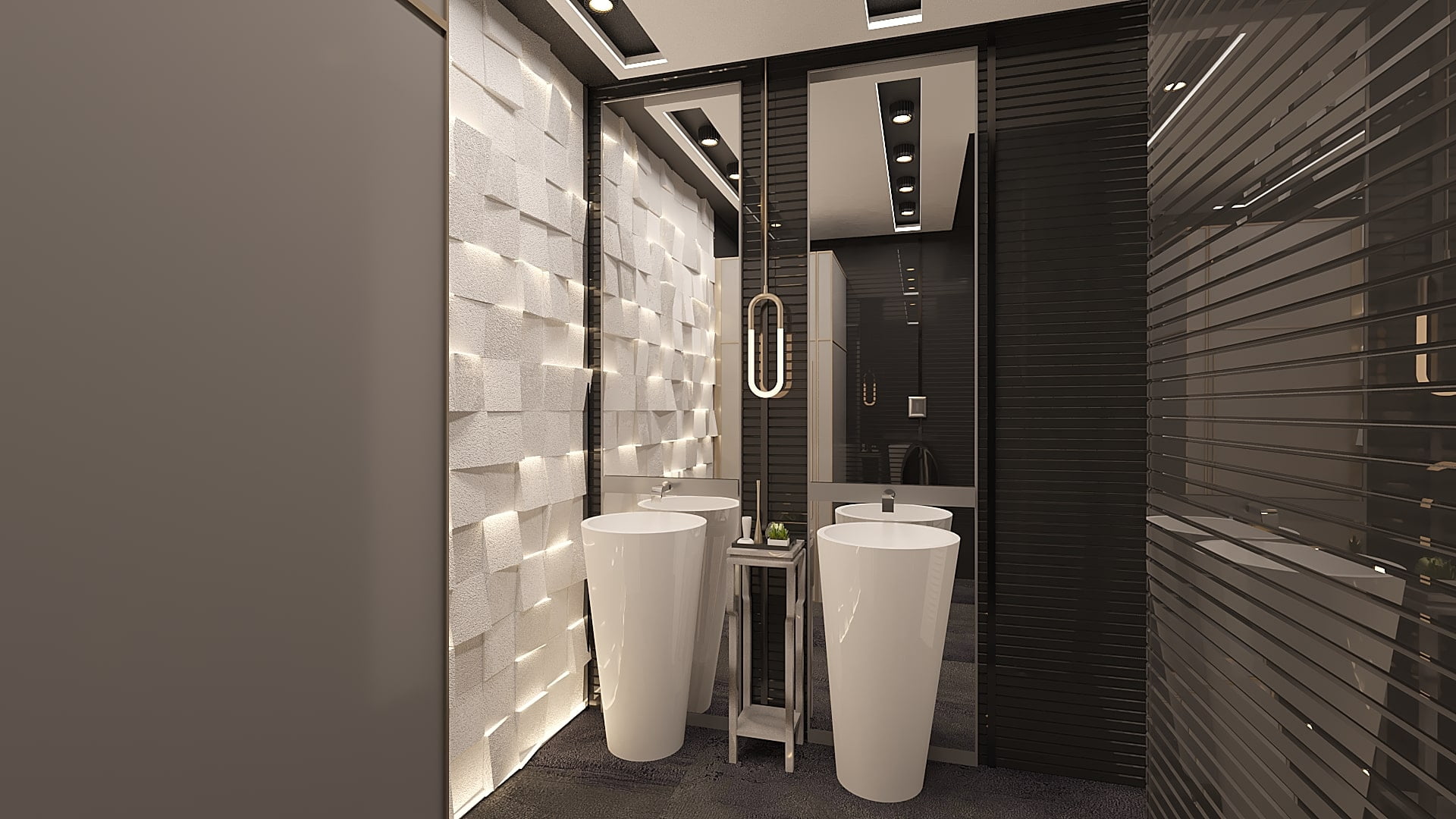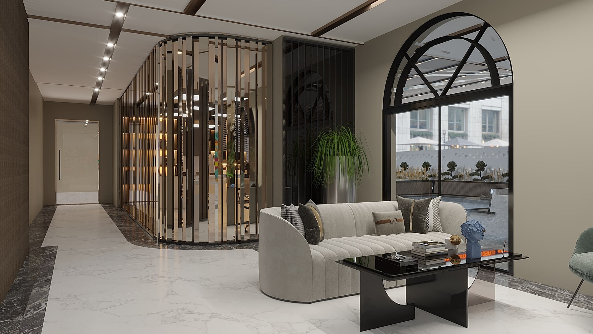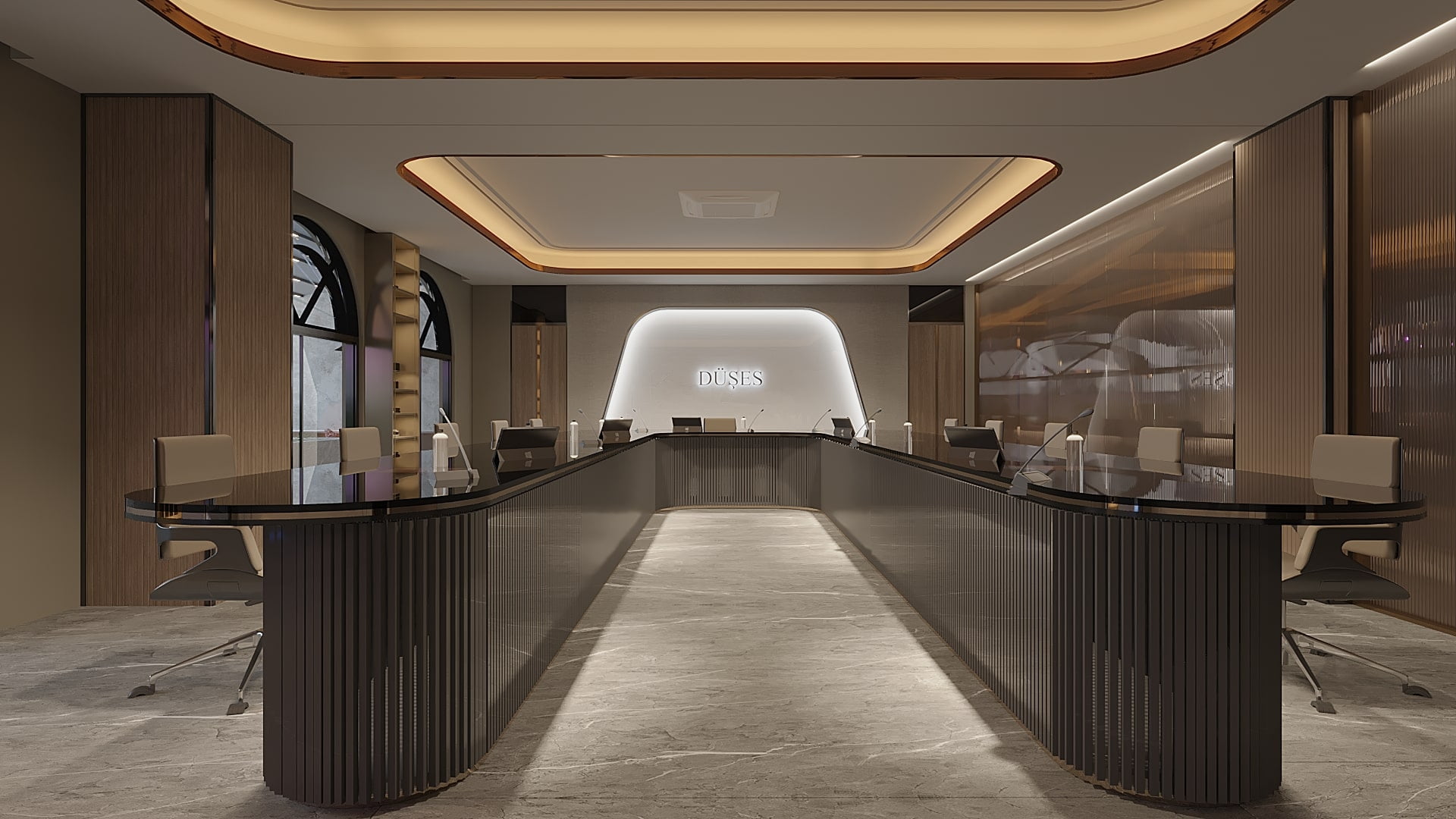 Bu proje için sadelik ve şıklığın uyumu yakalanarak kullanıcıların beklentilerini ve görsel zevklerini karşılayan tasarımlar geliştirildi. Salon ve yemek alanını ayıran şık şömine tasarımıyla ahşabın doğal sıcaklığı, mermerin zarif dokusuyla birleştirildi ve duvar dekorasyonlarıyla mekâna kimliği kazandırıldı. Cam vitrindeki Led ışık detayları ile modern dokunuşlar yapıldı.